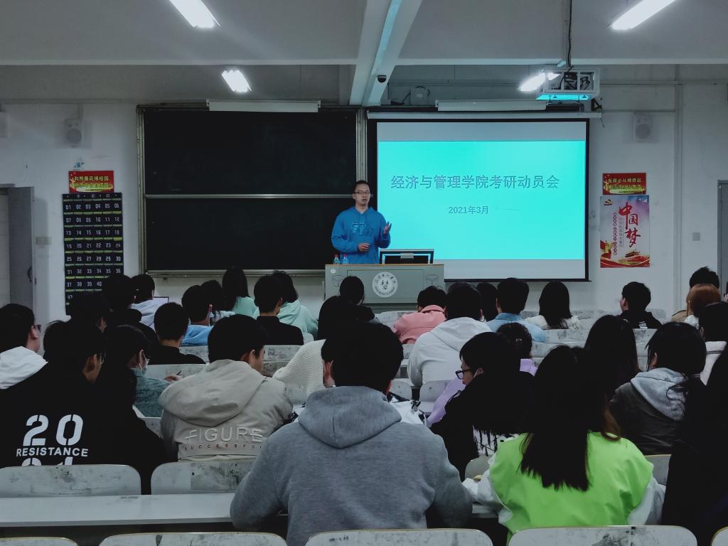 2021年3月25日,太阳集团tyc33455组织召开2021年考研动员会,2018级拟考研学生参加了此次会议。会议由院学工办主任姚尧主持。姚尧通过比较研究生应届毕业生和本科应届毕业生的工资收入差异,鼓励同学们积极报考、认真准备,为自己的美好未来努力奋斗。