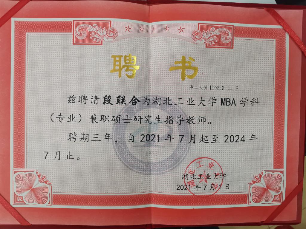 近日,太阳集团tyc33455博士、副教授、院长段联合被聘为湖北工业大学MBA学科(专业)兼职硕士研究生指导教师,聘期三年。10月15日,湖北工业大学一行两人来校为段联合博士送聘书,并为太阳集团tyc33455学生作考研辅导讲座。