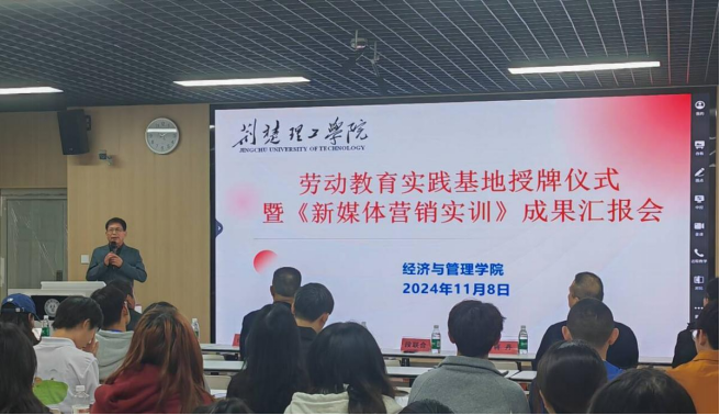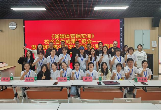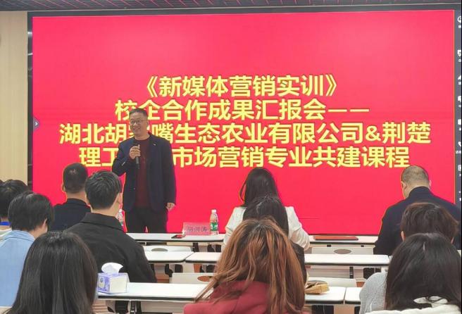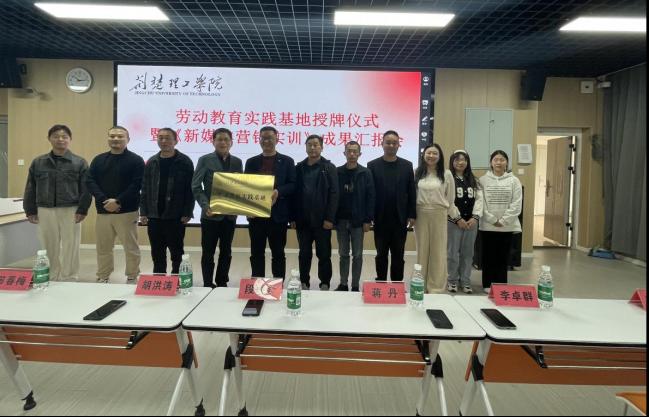 为深入推进产教融合和协同育人,把劳动教育纳入专业人才培养全过程,构建德智体美劳全面培养的专业教育体系,我院于2024年11月8日举办新媒体营销实训(校级社会实践一流课程)成果汇报会。与此同时,依托既有的校企共建课程合作机制,我院联合湖北胡家嘴生态农业有限公司共同打造的劳动教育实践基地正式揭牌。湖北胡家嘴生态农业有限公司总经理胡洪涛、东宝区子陵铺镇各村主任、经济与管理学院党总支书记段联合、市场营销专业负责人李卓群、新媒体营销实训课程负责人蒋丹博士出席本次活动。