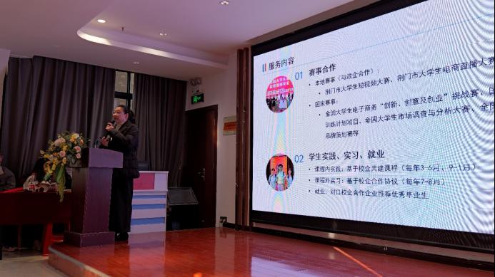 我院市场营销专业负责人李卓群博士和新媒体直播教研室主任蒋丹博士作为“路演”嘉宾,向与会企业家们详细介绍了市场营销专业的人才培养目标、专业特色和优势,以及近三年对接校地行企所取得的丰硕成果。两位博士的生动讲解激起了与会企业家们的浓厚兴趣,纷纷留下联系方式。