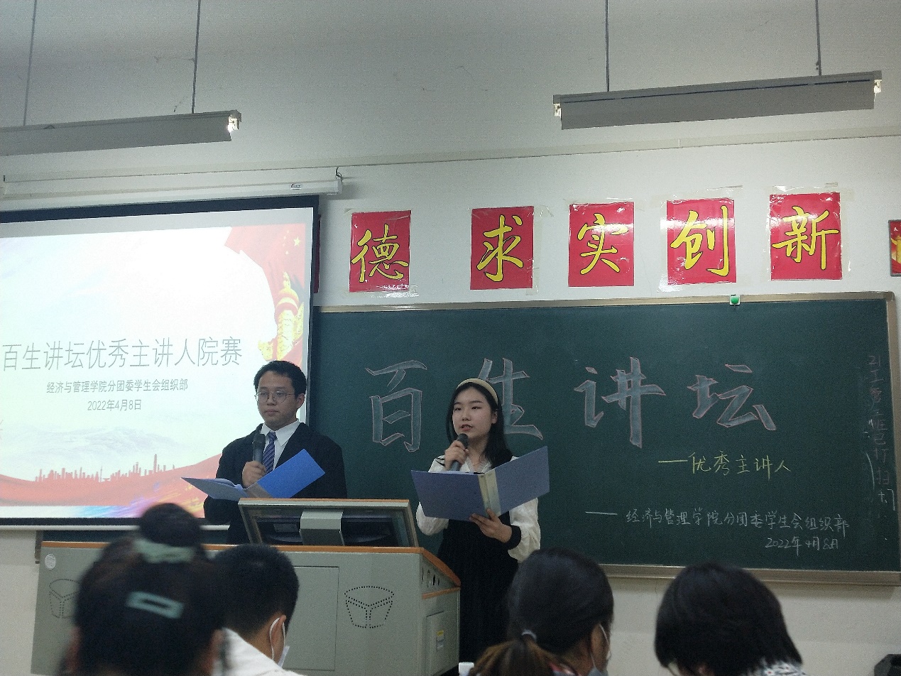 为进一步推进习近平新时代中国特色社会主义思想入脑入心,更好地肩负起中华民族伟大复兴的重任,深入学习习近平总书记的十年两会故事,太阳集团tyc33455于4月8日晚在A1—101开展了百生讲坛优秀主讲人院赛。