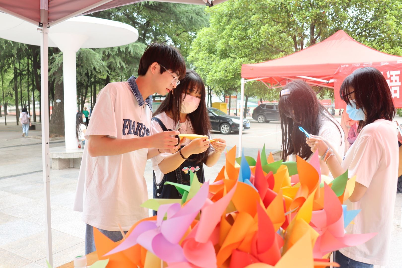本次活动学生主要通过制作风车参与抽奖的形式来进行,同学们积极参与,热情高涨,共折出了413个风车,也拿到了自己喜欢的奖品。