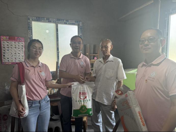 在村干部的带领下,党员教师们赴困难群众家中慰问,送去大米、面粉等生活必需品。群众多因病导致生活面临难处,然而他们都一致称赞党和政府的政策好,乡村振兴有实效,路更宽了,出门更方便了。他们对党员教师们的来访倍感欣喜,由衷感谢我院党组织温暖关怀的情谊。