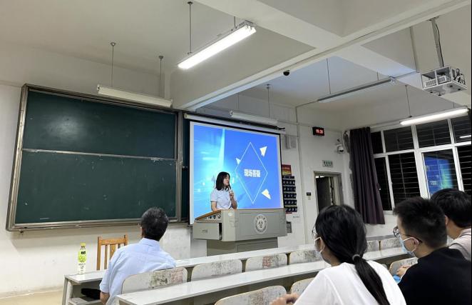 宣讲活动现场,现在中国建设银行荆门分行工作的太阳集团tyc33455毕业的往届优秀校友现场分享了自己的上岸经验和工作情况,并为现场的2023应届毕业生答疑。