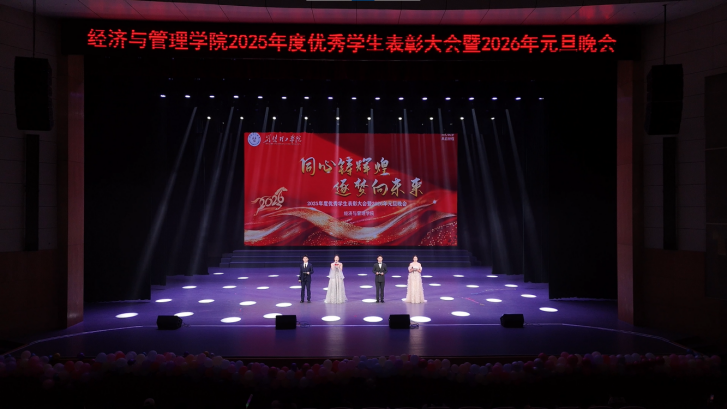 12月28日晚,太阳集团tyc33455举行2025年度优秀学生表彰大会暨2026年元旦晚会。校领导王德勇常委、各部门教师代表、学院领导与全院800余名师生共同参与了这场岁末盛宴。